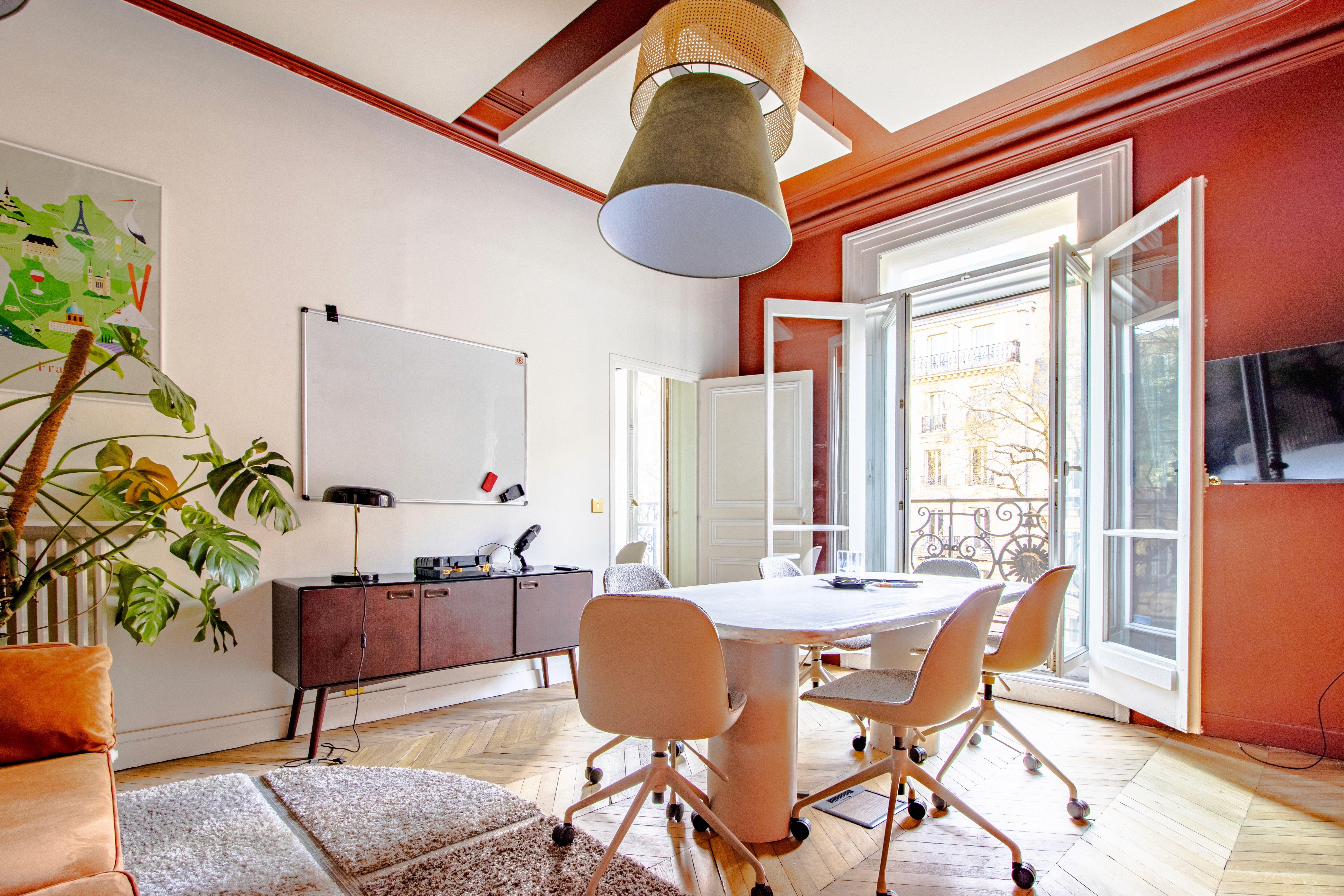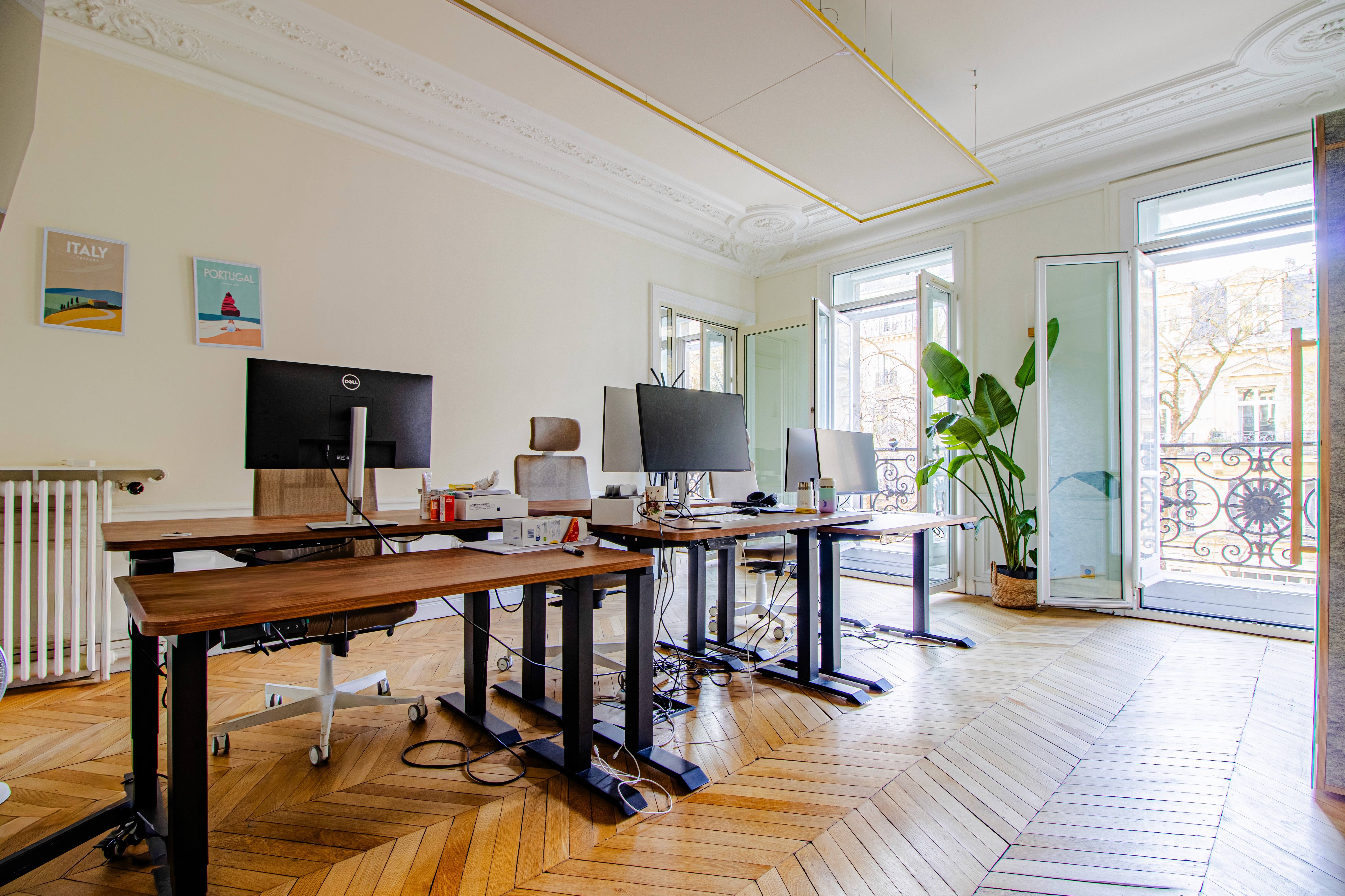 Les locaux sont aménagés en trois espaces ouverts, deux salles de réunion, un espace détente, une cuisine, deux sanitaires ainsi qu’une douche. Ils bénéficient d’une très belle hauteur sous plafond, de parquet, moulures et cheminées, ainsi que d’un balcon filant, apportant un véritable confort d’usage.